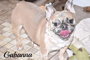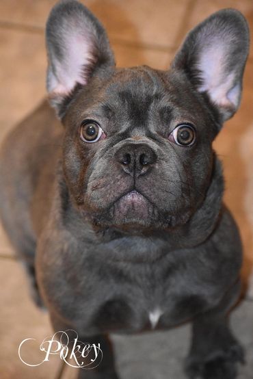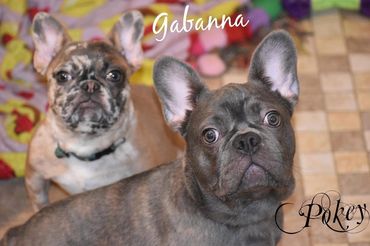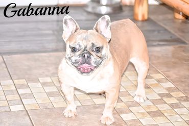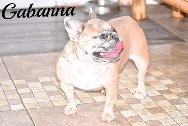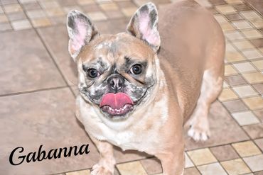 Pokey is another one of our new additions. She's our smallest, thick and compact girl. Gabanna looks to have freckles all over her face...giving her a unusual look. She is so sweet and calm. Loves to play, but is a follower in the Frenchie family.