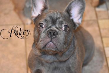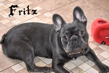 Fritz is another one of our newer additions. He's our youngest male. He is a darker blue in color with a little white on his chest. His brindle is hardly noticeable. He is definitely a talker....Always barking and making small noises that give him a funny personality. His dad is a Long Hair Frenchie and his mom a Dark blue. His parents pictures posted below.